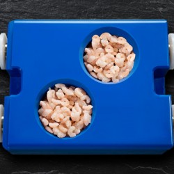 Shaping frozen shrimps opens up completely new horizons for convenience products. Frozen shrimps or pieces of shrimps can be used in this process: A batch of pieces, selected to make up the target weight, is shaped into a single portion with given contour and portion thickness. There is a wide variety of possible contours: burgers or fantasy shapes, portions or finger food. Breaded burgers turn to shrimp filled crispy pockets upon cooking. Specific contours can be developed on customer request. Shrimps or shrimp pieces might also be frozen to a block having the contour similar to a standard frozen fish block. This might in particular be an option for more convenient storage.Equipment